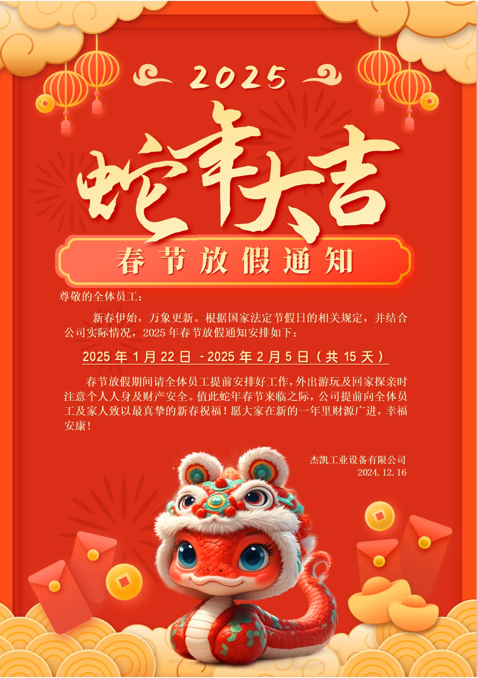 杰凱泵業|2025年春節放假通知!