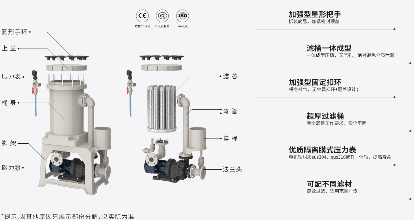 耐腐蝕能性及結(jié)構(gòu)強(qiáng)度加厚桶一體成型設(shè)計(jì),配套多種款式濾材,整機(jī)無焊接點(diǎn),無泄漏